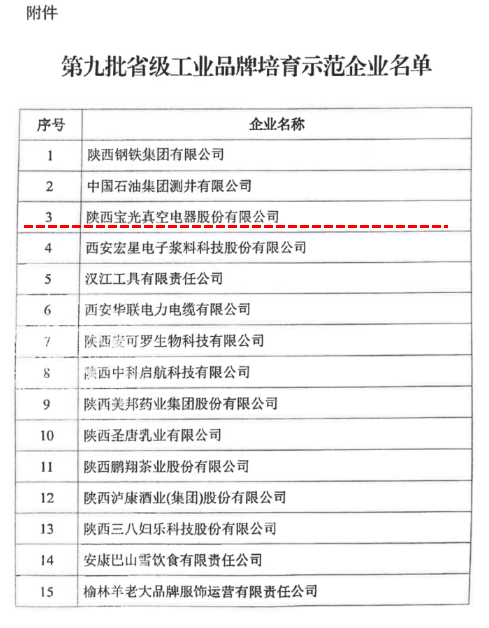 近日,陜西省工業(yè)和信息化廳公布了第九批省級工業(yè)品牌培育示范企業(yè)名單,寶光股份成功入選并榮獲“省級工業(yè)品牌培育示范企業(yè)”稱號。