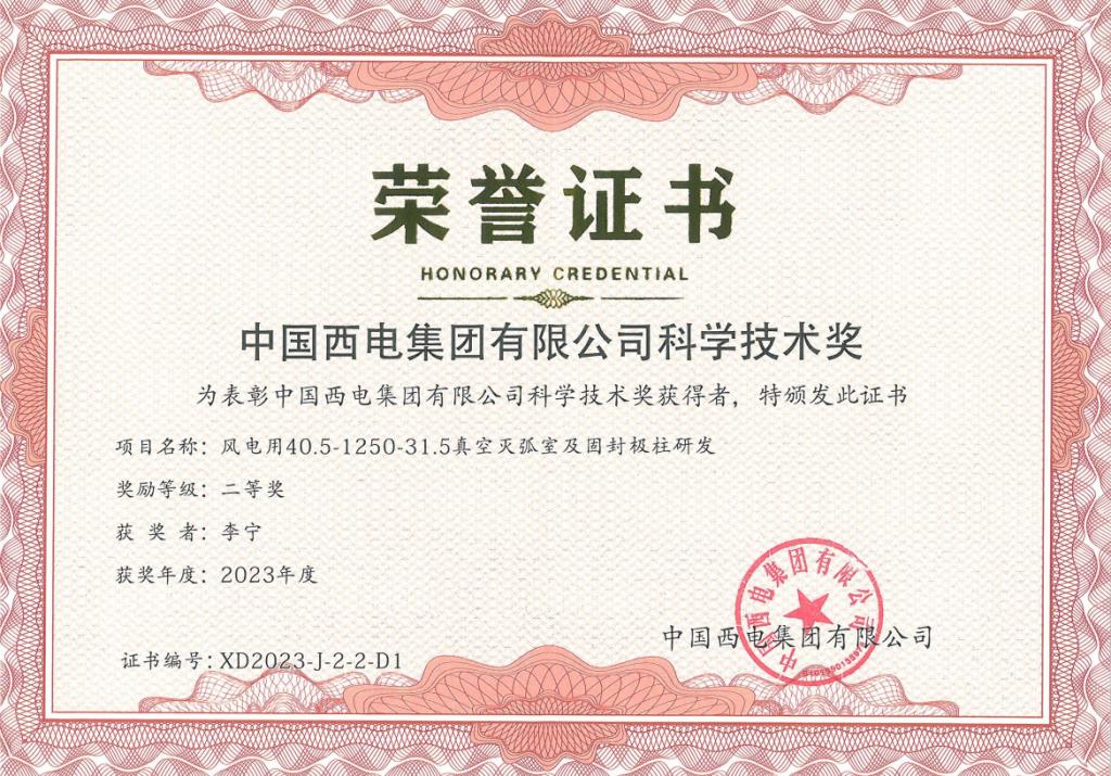 近日,寶光股份《換流變壓器有載分接開關(guān)用真空滅弧室研發(fā)》與《風(fēng)電用40.5 kV/1250 A-31.5 kA真空滅弧室及固封極柱研發(fā)》兩個(gè)技術(shù)創(chuàng)新項(xiàng)目,分別榮獲2023年度中國(guó)西電集團(tuán)科學(xué)技術(shù)獎(jiǎng)“一等獎(jiǎng)”與“二等獎(jiǎng)”!