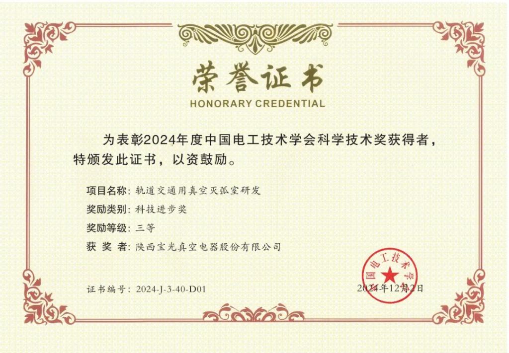 項(xiàng)目名稱:軌道交通用真空滅弧室研發(fā)。項(xiàng)目簡介:本項(xiàng)目研發(fā)出的BGH2570、BGH2580、BGH2590/R、BGH2530等系列化產(chǎn)品,可替代進(jìn)口產(chǎn)品。4種產(chǎn)品全部通過了裝車運(yùn)行驗(yàn)證,部分產(chǎn)品實(shí)現(xiàn)了小批量供貨。其中BGH2570型產(chǎn)品于2023年9月通過了中國機(jī)械工業(yè)聯(lián)合會產(chǎn)品鑒定,技術(shù)水平達(dá)到國際領(lǐng)先。2021年至2024年累計(jì)銷量超過1000只,累計(jì)銷售額超過超過600萬元。