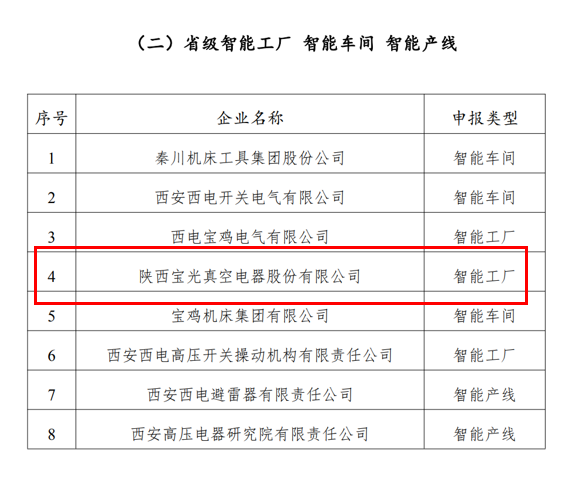 3月14日,陜西省工信廳裝備工業(yè)處發(fā)布2021年度省級(jí)智能制造試點(diǎn)示范企業(yè)及省級(jí)智能工廠(chǎng)名單,寶光股份獲評(píng)“2021年度省級(jí)智能工廠(chǎng)”。